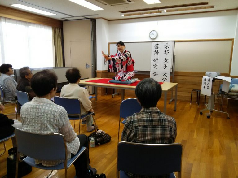 こんにちは! 8月のおたっしゃ学習クラブ担当の高田です。今月は本クラブ初の 「落語の会」。京都女子大学・落語研究会さんにご協力いただき 夏の暑さを吹っ飛ばそう ~落語で認知症予防?!~ と題し、 現役女子大生のお二方(藤乃家 海瑠来さん、女子亭 杏ちょびさん)に 可愛らしくも面白い漫才と落語4席をご披露いただきました。 最近は落語の静かなるブーム再来?!と言われているそうで、 ここ数年では、園児に落語を聞かせる幼稚園が増えているんだとか……。 ご存知の方も多いと思いますが、 大きな声で笑うこと(腹式呼吸)により、体内の免疫系が活性化され、 同時に、落語を「聴く」ことで、右脳が活性化。 イメージする能力がアップし、直感力が働きやすくなるんだそうです。 このところの暑さで、 何事にも気力やモチベーションが下がりやすいため、 大笑いして、暑さを吹き飛ばそう!と企画いたしました。ご参加いただいた皆様は、 最初の方こそ、緊張気味に耳を傾けておられましたが、 話が進むにつれ、次第にリラックスされて「クスクス」 「あははは」笑い声が聞こえ始めると、演者の学生さんも、大熱演!!! 終演後、参加されたみなさまから、 「久しぶりに大笑いしたわ~」 「一時間、あっという間やったわ〜」 とお声をいただきました。 最後になりましたが、今回ご協力いただきました 京都女子大学・落語研究会の 藤乃家 海瑠来さん、 女子亭 杏ちょびさん、 本当に楽しいひと時をありがとうございました!! そして、おたっしゃクラブ会員の皆様、 次回もまたお越しくださいませ! 京都市南区の介護・介護予防の市民相談窓口 出張型地域包括支援センター おたっしゃ広場