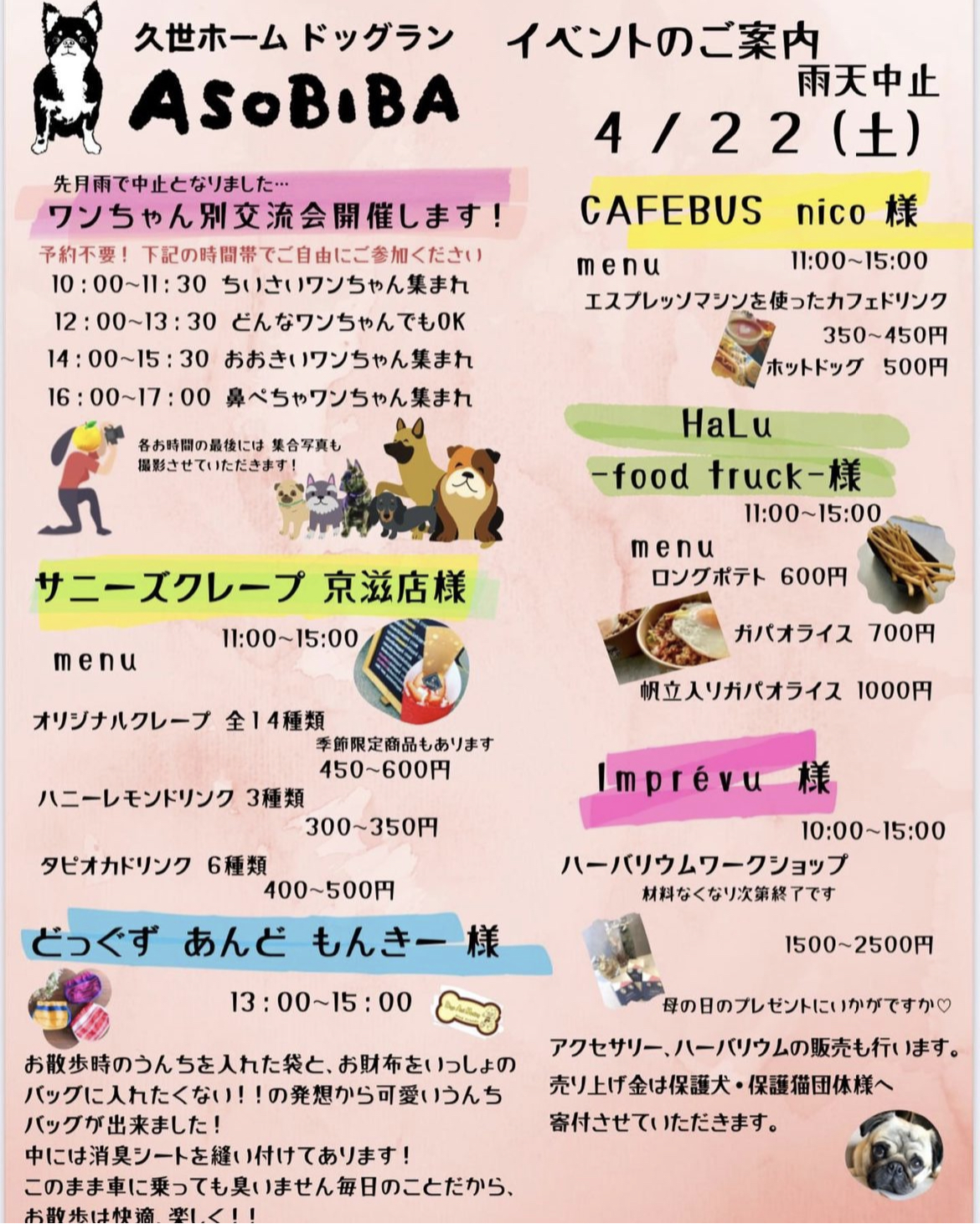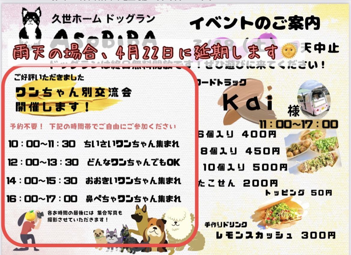 【久世ホームドッグラン】4月イベントのお店紹介(2)