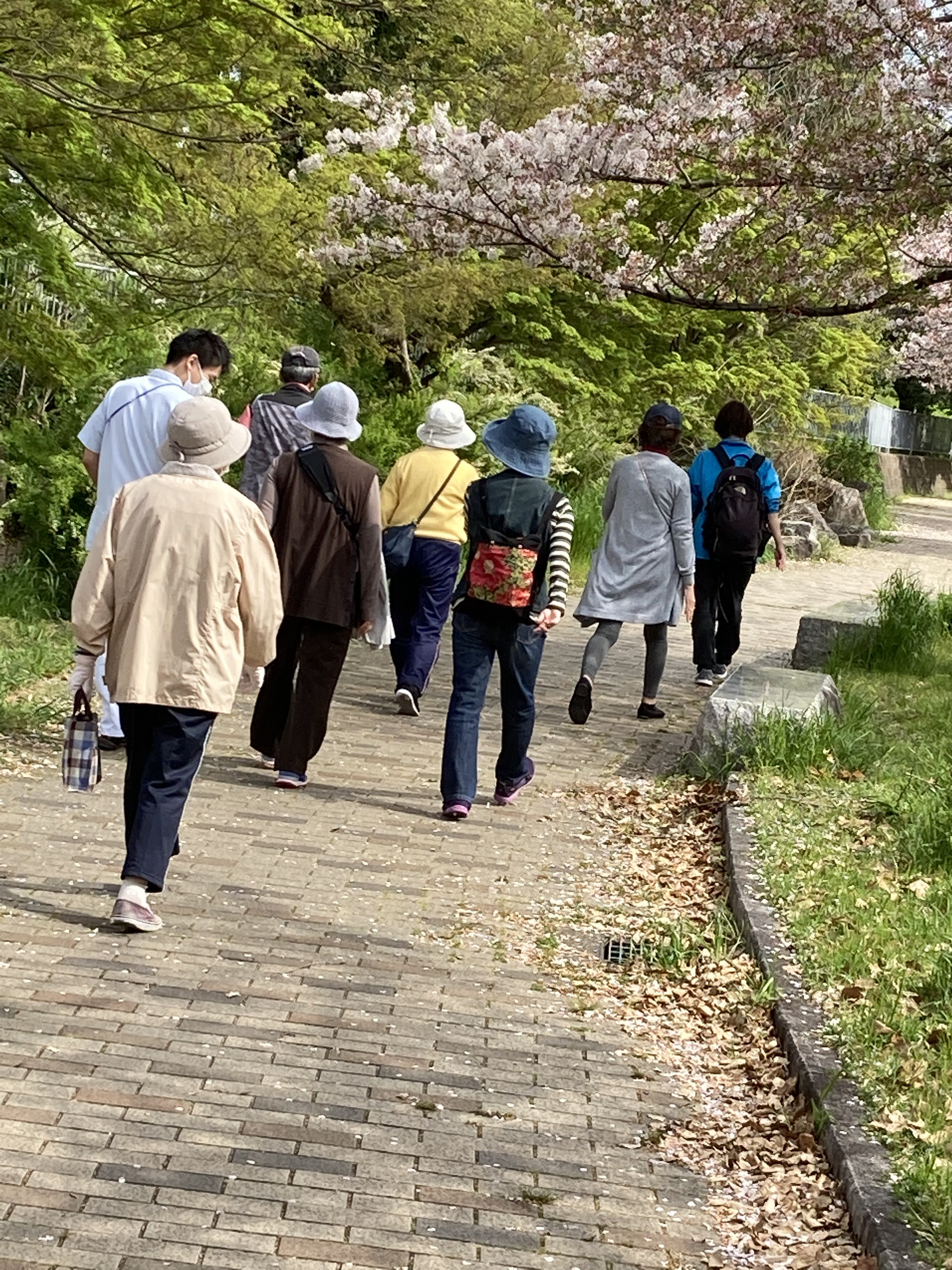 皆さんこんにちは! 桜も咲き、暖かくなってまいりましたね。包括支援センターの近くの久世ニューリバー公園は桜並木になっており、とても奇麗に咲き誇っています。 さて、令和3年4月3日土曜日に一年ぶりとなる『第5回目 はつらつ健康道場」を開催しました。いつもは屋内の会場で片足立ちや握力測定、体操器械の体験などを行っているのですが、コロナ感染予防を徹底するため、内容を屋外のウォーキング教室に変えて実施致しました。 久世ホーム短期集中運動型デイサービスの理学療法士 大坂先生と 同じく 中島先生にウォーキングの個別相談にのって頂き、歩き方のコツや姿勢について指導を受けておられました。 ウォーキング後は介護予防推進センターの平先生からウォーキング後にお勧めなストレッチを教えて頂きました。 暖かい日が増えてきましたので、皆さんもウォーキングしてみましょう!