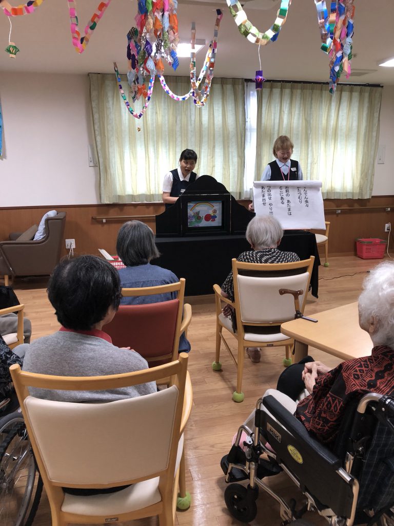 久世ふれあいセンター図書館×久世包括の取り組みとして実施している、 「こゝろカフェ」 今回は会場を、洛和小規模多機能サービス桂川で実施。 夏を感じる内容の紙芝居やレクレーションで、 みなさん笑顔(^ ^) 楽しいひとときでした♪