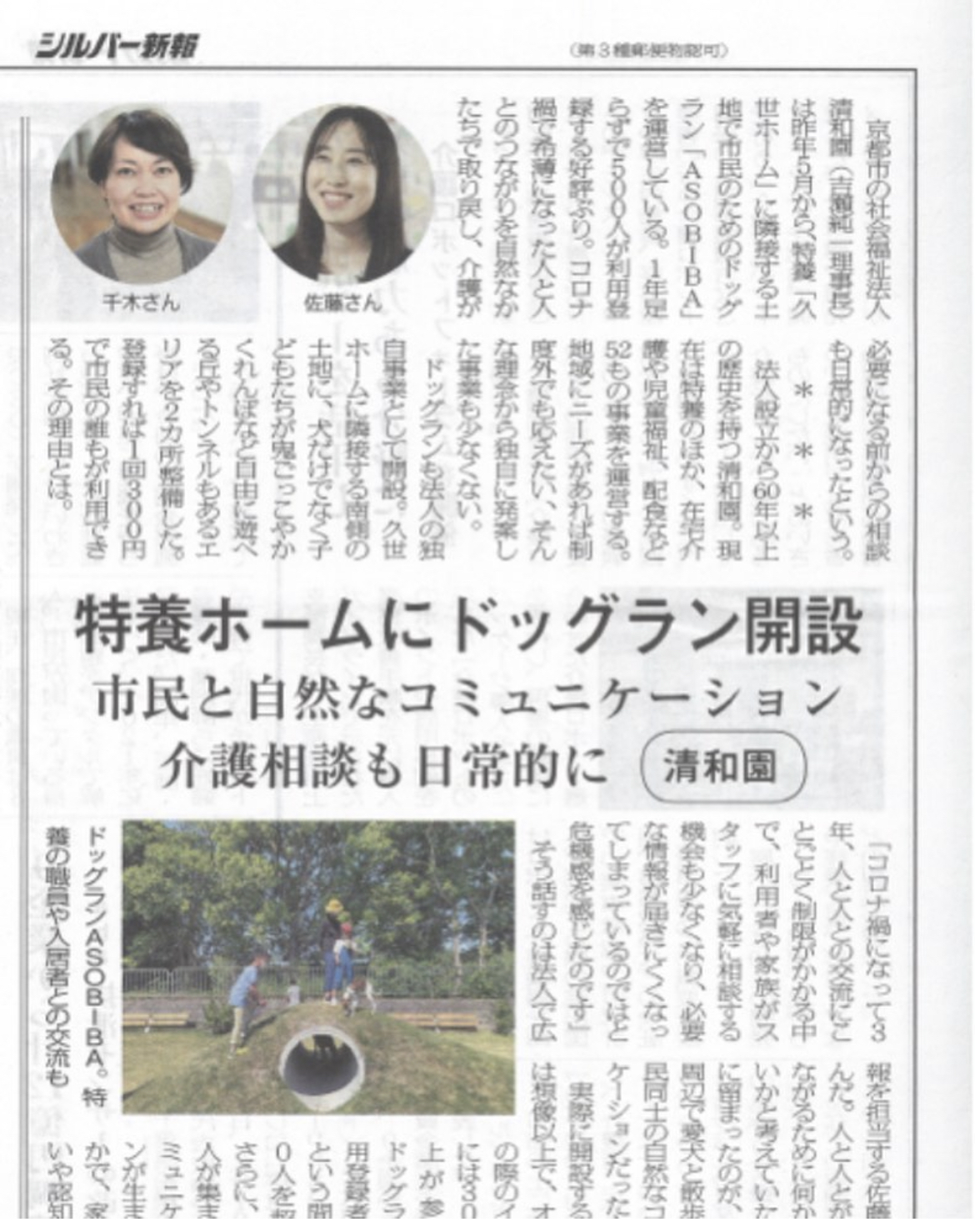 この度、久世ホームドッグランASOBIBAが、シルバー新報に取り上げられました🙌 地域づくりの拠点として、次年度はさらに展開していきたいドッグランですが、オープンから一年も経過しないうちに、たくさんの方にご利用頂けるようになっていることに、心から感謝申し上げます🌸 今後の展開もお楽しみに🍀 ================================= 💻HPは【久世ホームドッグラン】で検索💫 プロフィール欄URLからもアクセスできます🤗 @asobiba_kuzeh.dog run イベントのご案内は久世地域包括支援センター @kuze.houkatu ホームページにも掲載しています🎉 🐶ご利用予約•会員登録は☎️075-933-5787にお電話もしくは、直接久世ホームまでお越しください🐶 #京都市南区#社会福祉法人清和園#久世ホーム#ドッグラン#asobiba #地域とつながるドッグランプロジェクト#福祉施設併設ドッグラン #地域福祉#地域づくり#多世代交流 #愛犬#犬のいる暮らし #お出かけ#遊び場#芝生#天然芝#土管#山#オリーブ#おしゃれなベンチ#地域包括支援センター#コミュニティ#人と人のつながり#場所づくり#公園#イベント#マルシェ#キッチンカー#児童館#在宅特養