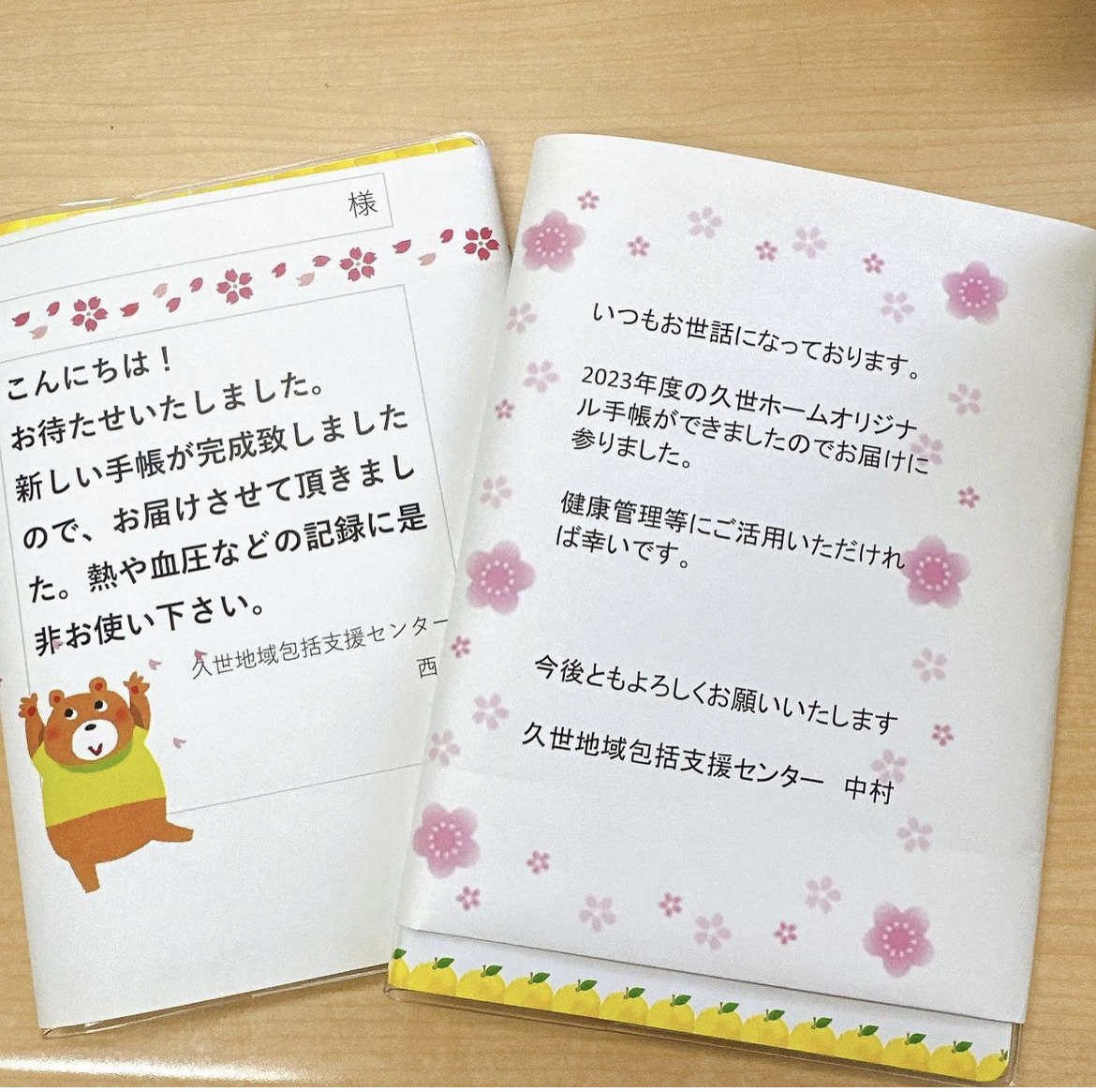 先日、久世ホームで作っているおたっしゃ手帳が完成しました🎉✨ 包括の担当している方で、久世ホームのサービスを使われていない方には直接お渡ししに行ったりポストに入れさせてもらっています📮 今回は各々がかわいい手紙をつけていたので写真を撮ってみました🤩 血圧測定や食べたもの、その日の簡単な日記などしっかり記録している方が多くいらっしゃるので、今年も沢山活用して貰えたらと思います☺️ 新年度が始まりましたが、いい一年にできるよう包括職員一同で頑張っていきます‼️ #春 #手帳 #おたっしゃ手帳 #お手紙 #🌸 #桜 #お花 #血圧 #体温 #日記 #食べ物 #出来事 #お手紙 #ポスト #お渡し #楽しみ #久世ホーム #久世包括 #インスタ企画 #介護 #在宅介護 #介護予防 #主任介護支援専門員 #介護支援専門員 #看護師 #社会福祉士 #ケアマネ #社会福祉法人清和園 #在宅特養 #seiwaen_promotion