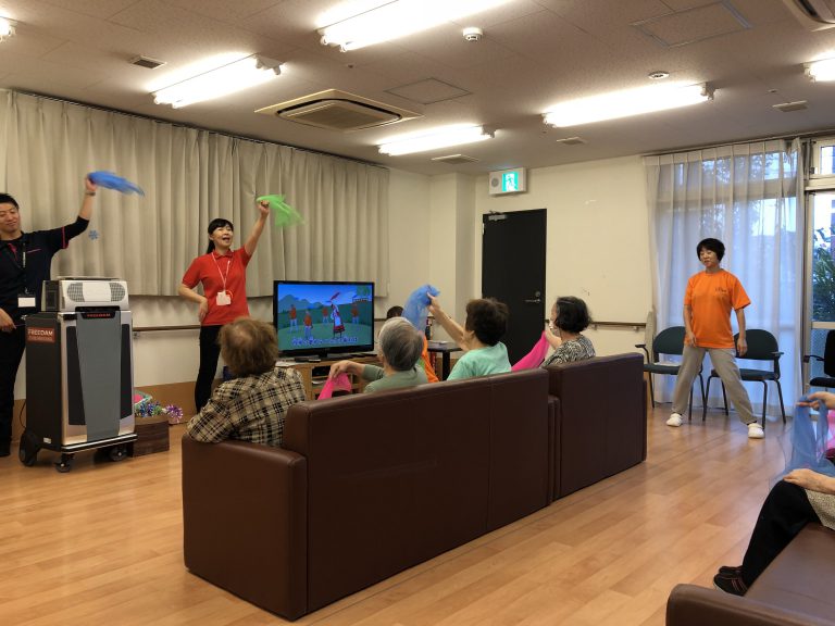 本日、上鳥羽学区にある「さざなみ京都南」というグループホームを会場にして、 地域交流サロン「かけはし」が開催されました。 久世包括からもお手伝いに伺い、一緒に第一興商様によるレクレーションを楽しみました! カラオケ機器で介護予防レクレーション! 歌に合わせてハンカチ体操♪ みなさんと一緒に思いっきり、懐メロを歌ってきました! 地域で交流がたくさん生まれることを、今後も応援していきたいと思います!